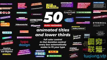 50种文字标题排版介绍字幕条动画 Titles Pack