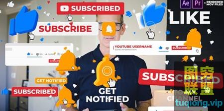AE模板自媒体频道订阅点赞模板网络视频点赞订阅图形动画