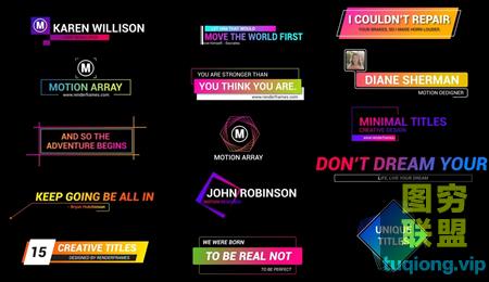 图穷联盟影视后期 » 15个独特设计的标题字幕AE模板,角标,弹窗设计模板!