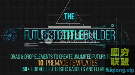 全高清未来科技标题,带有毛刺效果和50多个可调整大小,拖放未来主义的可编辑元素和小工具,用于创建和设计您自己的无限期未来标题。