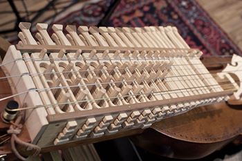 Standard pitched nyckelharpa made by Sören Åhker: standard Swedish 3-row tuned (low to high) C G C A.