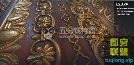 图穷联盟影视后期 » [zbrush笔刷]60组Zbursh游戏武器装饰纹理笔刷合集!@8138