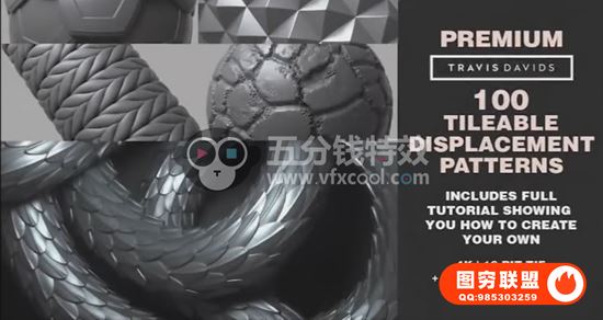 包含100张可平铺4K无缝纹理/Alpha图案,额外的25张纹理,以及纹理在Zbrush,Cinema 4D以及Substance Designer中的使用教程(英文原版),每个置换贴图都创建为16位tif,以确保高质量的置换结果。 每个位移都包含一个法线贴图版本。这些置换模式可用于快速详细说明简单几何图形或为3D模型添加更复杂的曲面细节。您还可以访问完全叙述的视频教程,向您展示如何创建自己的tileable置换/ alpha模式。