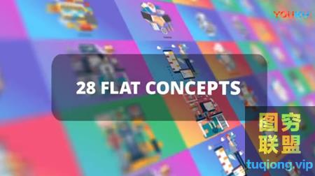 AE模板-扁平化商务概念场景MG动画 Bundle Business Flat Concepts