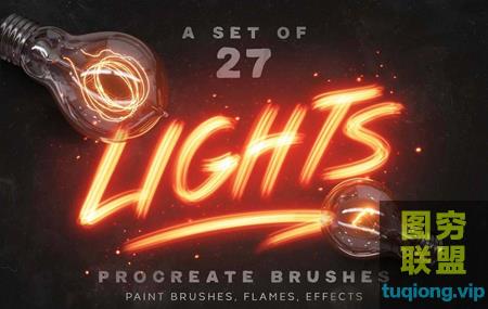 无论您是想绘制霓虹灯,创建发光字体,还是在插图中添加火焰或绽放等特殊效果,此套装都包含各种各样的产品,共有27种刷子可供选择。 光效是“内置”,这意味着你只需要选择一个明亮的颜色,并开始绘画:)