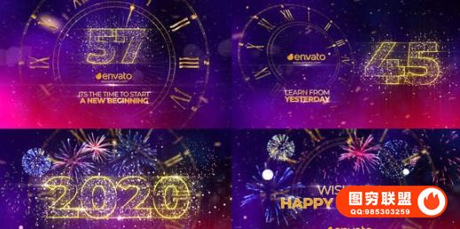 [AE模板]年农历庚子鼠年炫酷粒子时钟倒计时新年快乐片头@21830