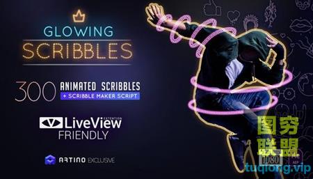图穷联盟影视后期 » [AE脚本]AE脚本插件-300种发光涂鸦线条描边霓虹图形动画元素工具包 Glowing S@23239