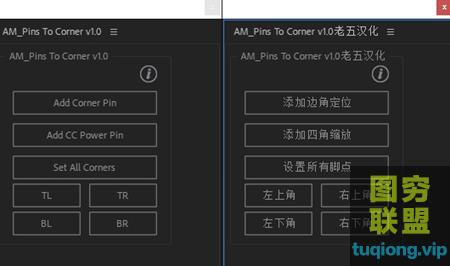 图穷联盟影视后期 » [AE脚本]汉化脚本图层边角控制随意定位放置脚本 AM Pins To Corne@23384