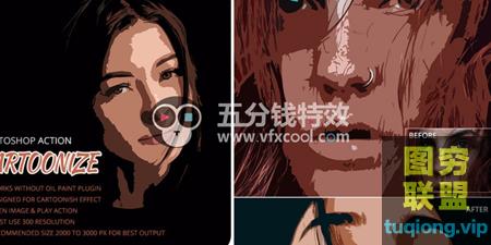 图穷联盟影视后期 » [PS插件]PS动作照片转卡通插画特效PS动作 Cartoonize Photoshop A@24826
