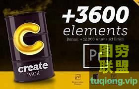预设包Create Pack是整个市场上最大的图形元素PR预设模板合集包,超过3600个元素。简单的智能控件可自定义修改文字内容颜色大小等,兼容任何分辨率。包含内容类别:排版样式、社交媒体、设备、标题、字幕条、呼出指示线、转场、背景、爆发、线条、图形元素等。