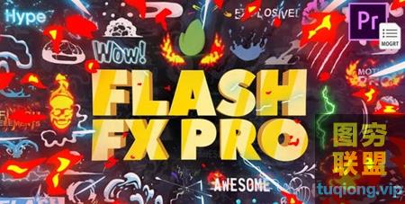 图穷联盟影视后期 » [PR预设]PR脚本预设-二维卡通游戏动漫火焰能量文字标题LOGO转场MG动画元素包 Fla@26201