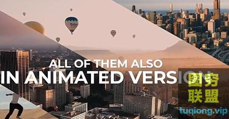 分屏包提供了20组动画屏幕布局的效果,分为4个不同的类别,共有80个预设,可让您在一个屏幕上显示多张照片和视频。您可以在动画/非动画布局,带框架的布局/不带框架的布局之间进行选择。此项目以FULL HD分辨率工作。屏幕上显示2、3、4和5个视频的网格布局。该多帧动画制作器包是所有视频编辑人员创建幻灯片,简介,演示等等的绝佳工具。所有布局在开始时也提供动画偏移过渡。只需将预设拖放到您的素材上即可。