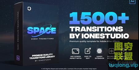 包含1500组视频转场预设,比如无缝转场、信号损坏毛刺、摄像机聚焦扭曲冲击、图形、笔刷水墨、切割、玻璃、模糊等多种分类效果,通过AtomX脚本来生成调用,需要什么效果直接生成放到两个视频中间上面即可。
