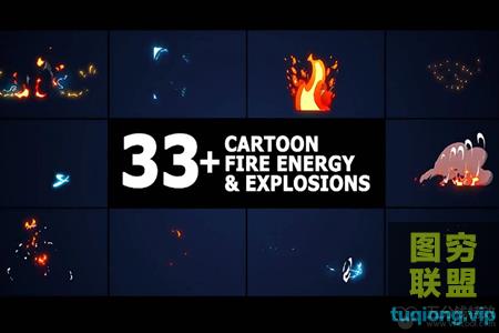 图穷联盟影视后期 » [达芬奇模板]达芬奇模板-33种卡通能量火焰爆炸MG动画Cartoon Fire Energy@29577