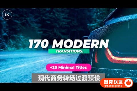 提供170个现代商务转场过渡预设和20个文字标题动画