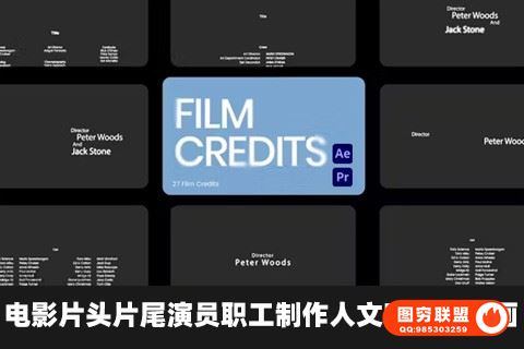 图穷联盟影视后期 » [PR模板]27组电影片头片尾演员职工制作人文字标题动画AE/PR模板 Film Credi@30960