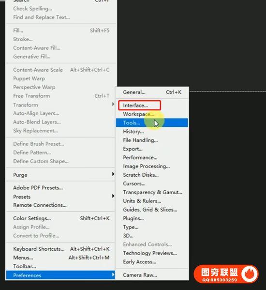 打开PS点击Edit编辑,找到对应的设置。
