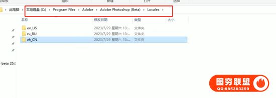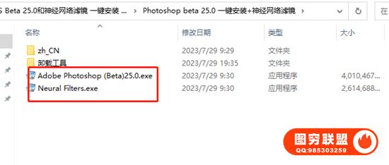 上图的zh-CN为中文语言,exe程序为25.0程序文件,Neural Filters 为神经网络滤镜。