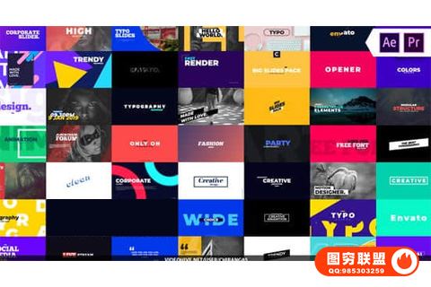 图穷联盟影视后期 » [AE模板]PR模板+72个时尚流行文字标题排版图形动画 Essential Ti@35841