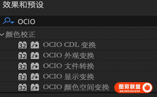 After Effects 现在提供 OCIO 外观变换和 OCIO CDL 变换选项,作为颜色校正类别下使用 OpenColorIO 处理颜色的效果。无需在项目中启用 OpenColorIO 色彩管理即可使用这些效果。