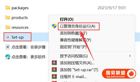 2.打开解压后的文件夹,鼠标右击【Set-up】选择【以管理员身份运行】。