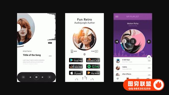 图穷联盟影视后期 » [AE模板]34组音乐播放器频谱可视化图形动画 Music Visualizati@37551