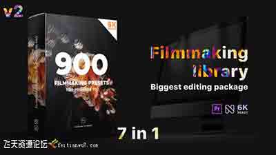 包含背景、文字标题、片头场景、调色、漏光效果、信号损坏特效、转场、常用视频特效、音效等一共超过900个元素效果,分为mogrt预设和prproj工程两个部分,最高支持到6K分辨率