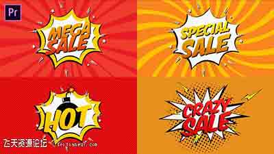 漫画卡通对话框气气泡动画PR预设-Comic Book Sale Cartoon Essenti