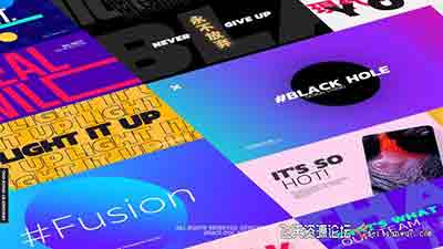 20个时尚彩色图文标题排版动画,可修改文字内容,颜色,图形,透明背景等。