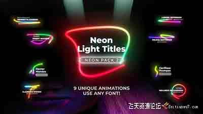 第二套FCPX插件包含9种霓虹灯文字标题动画,适用于短片简介,音乐视频,广告,体育短片,预告片等。