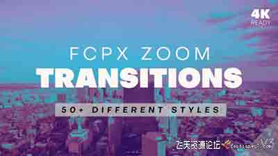 50种不同风格的过渡变焦与3D故障效果Final Cut Pro X转场插件,高达支持4K的分辨率,加上手机1080×1920分辨率。